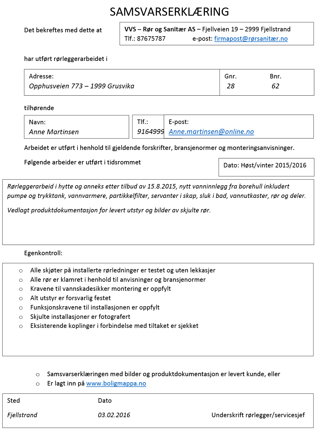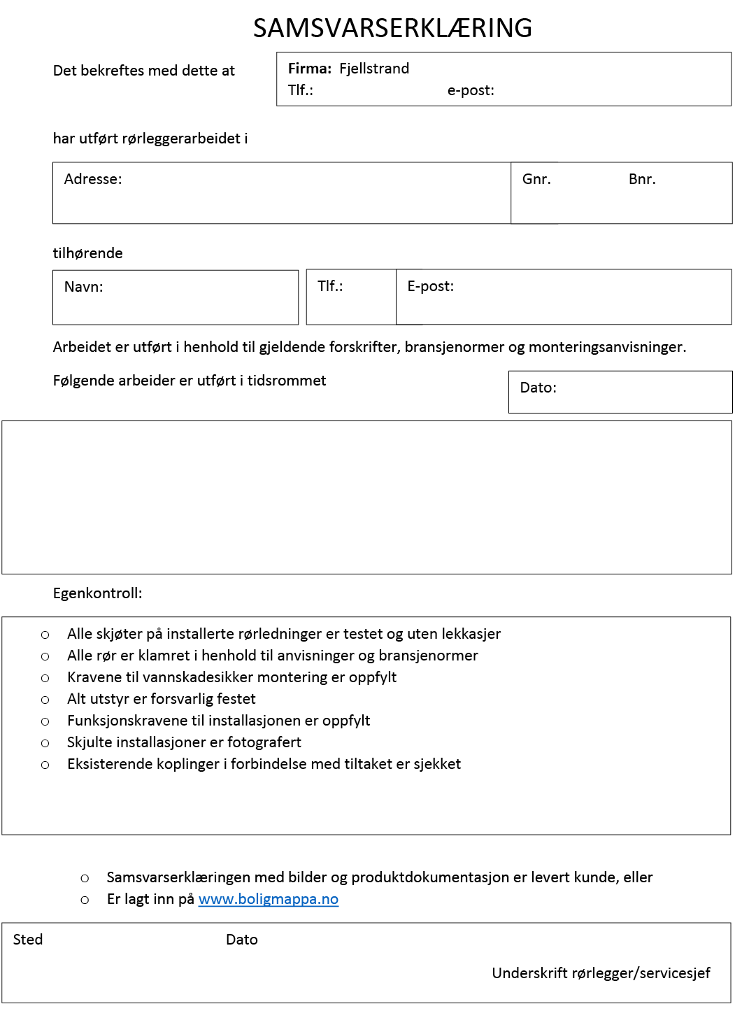 310.23 ABC for dokumentering ved riktig installasjon – samsvarserklæring