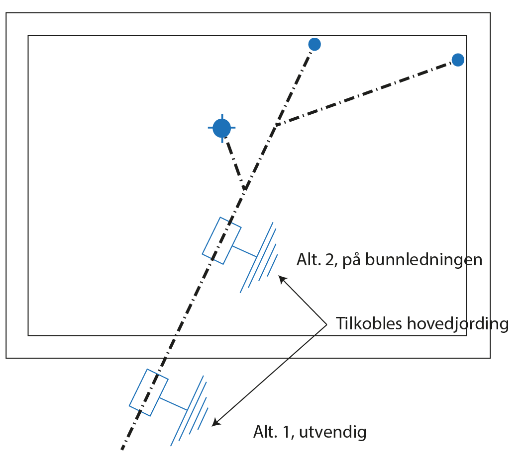 - Reglene sier at alle vannledninger og sentralvarmeanlegg skal jordes til byggets hovedjord.