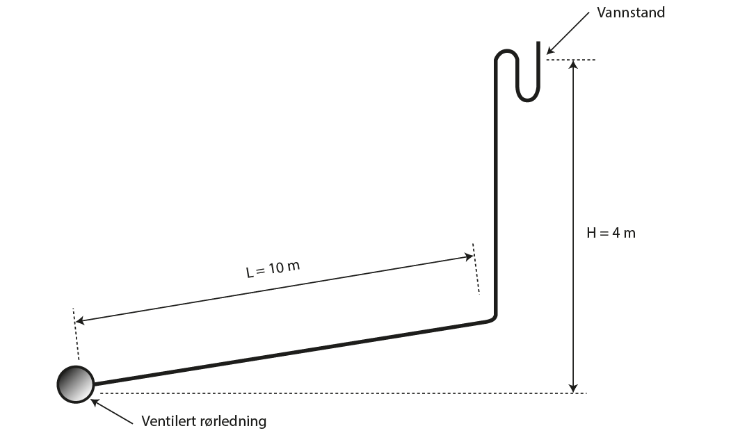 Figur 1. Største lengde L og fallhøyde H på uventilert spillvannsledning.