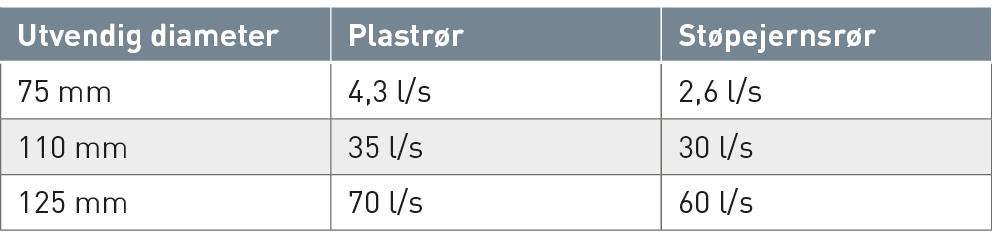 - Til en ventilert bunnledning kan du føre følgende vannmengder ved fall 1:60: