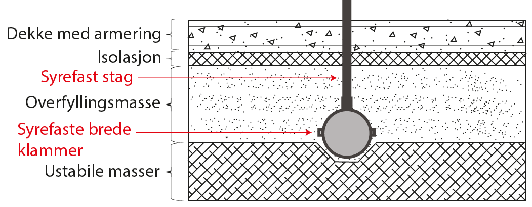 - Eventuelt må rørene legges i syrefaste skinner.