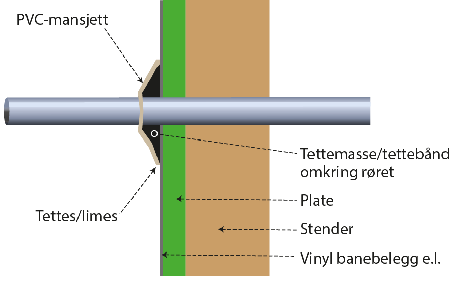 Ved gjennomføring av rør i tettesjikt, må man benytte mansjetter tilpasset gjennomføringen og typen tettesjikt.