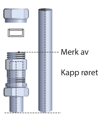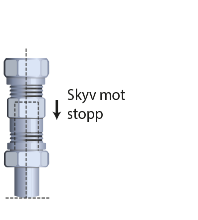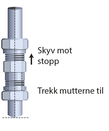 | 3/8 | 9,5 | 16 | 6,7 | 1/8 | Gjenger NB! Ikke bruk 10 mm kompresjonskobling på 3/8”! Det finnes ikke kompresjonskobling som passer til denne dimensjonen. |