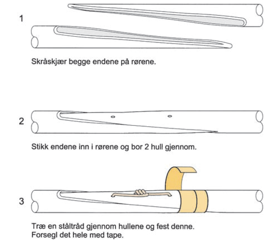 - Du kan også benytte gjengekoplinger eller «grisepikker». Ofte kan de være for lange, slik at de ikke kommer gjennom krappe bøyer.