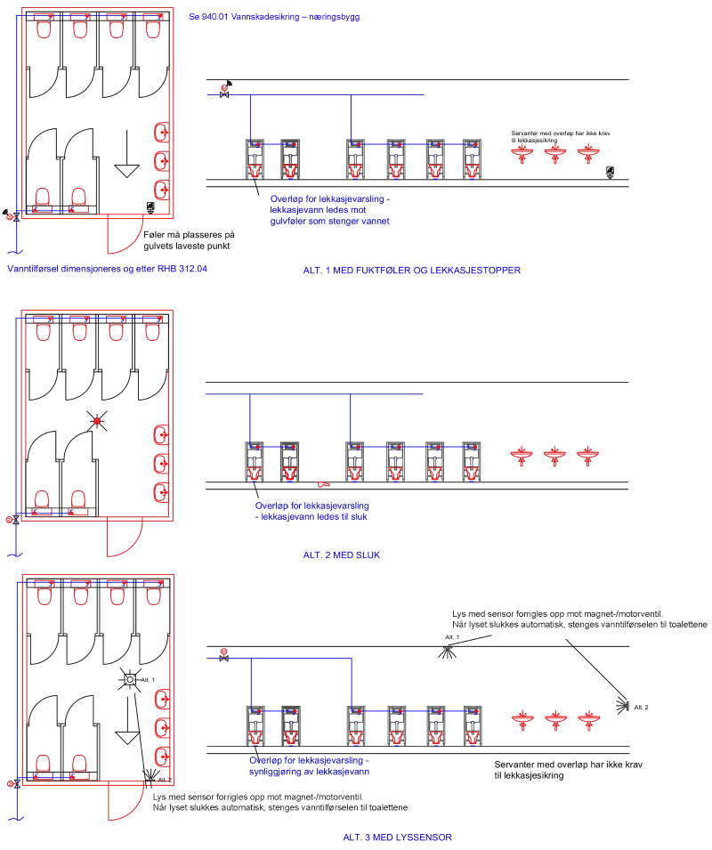 Eksempel på bruk av planskisser ved kartlegging av lekkasjer og fuktskader