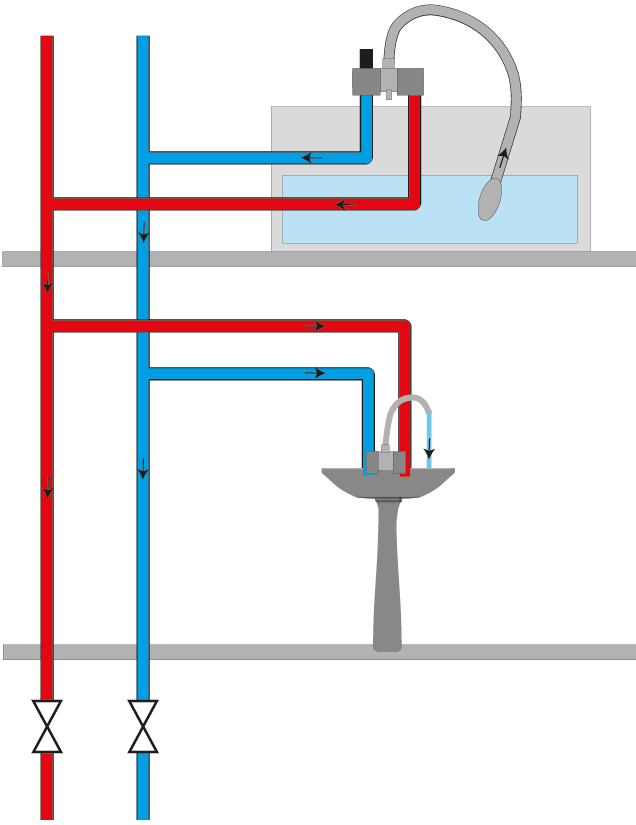 Spesielt utsatt er bade- og boblekar med bunnfylling. Her har rørleggeren et stort ansvar for at installasjonen blir utført uten fare for tilbakestrømming av urent badevann inn i vannledningen. Han må påse at monteringsanvisningen følges, og at produktet leveres med nødvendige sikkerhetsdetaljer mot tilbakestrømming. Forurenset vann kan føre til alvorlige sykdommer, og det er derfor viktig å montere armatur som forhindrer tilbakeslag eller på annen måte sørge for at forurenset vann ikke blander seg med drikkevannet.