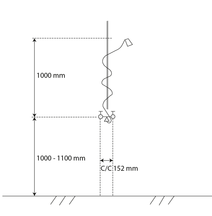 Veggmontert slangekran og annet tappearmatur skal monteres i en høyde på mellom 100 og 110 cm fra gulv dersom brukeren ikke har andre ønsker. Avvik fra normalhøyde dokumenteres.