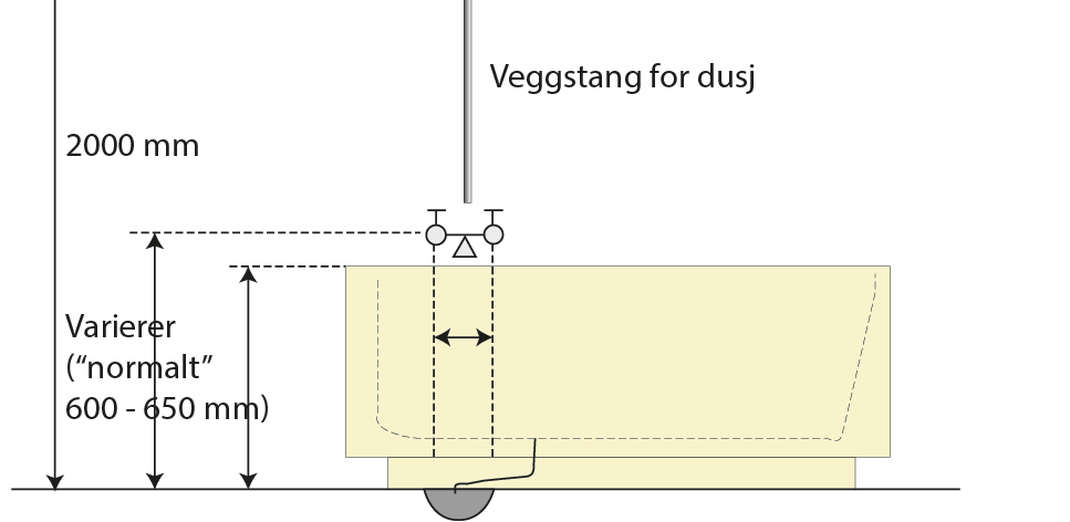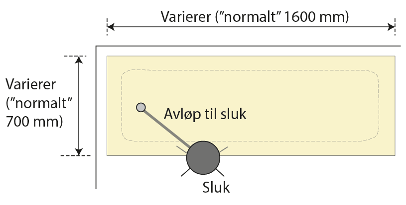 - Målene som her er oppgitt gjelder standard badekar. Er du i tvil om målene, sjekk leverandørens brosjyrer.