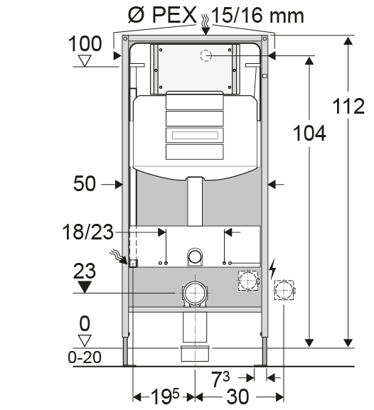 I tillegg til å ta belastningene, er de fleste rammene justerbare og vil forenkle monteringen. Følg monteringsanvisningen. Ved bruk av rammer er det viktig å ta hensyn til den belastningen som veggplaten vil få fra nedre del av skålen som presser mot platen.
