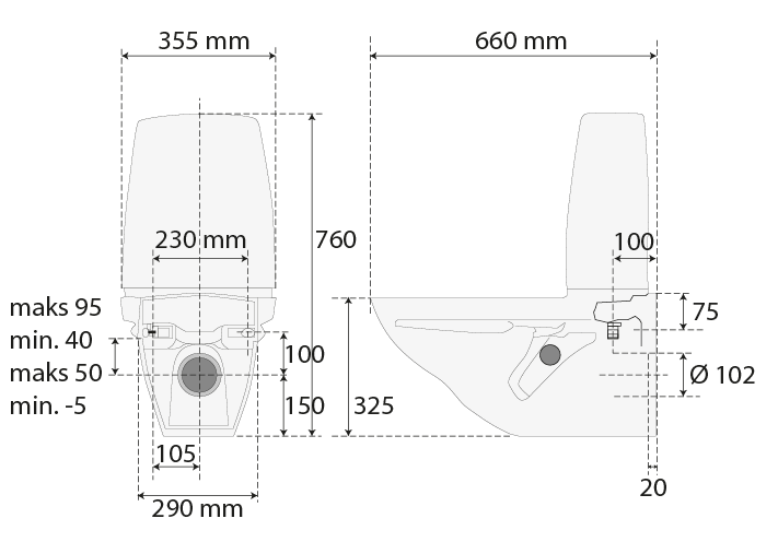 NS 3420 stiller strenge krav til vegghengte toaletter som skal tåle en belastning på 400 kg ytterst på skåla. Når toalettene kun har to boltefester, sier det seg selv at boltene må forankres svært solid. Dette gjelder både toaletter med innebygget sisterne og dem med utenpåliggende sisterne.