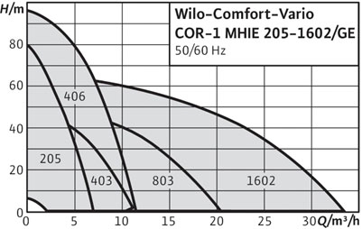 Figur 3. Kapasitetsdiagram for Wilo-pumpe.