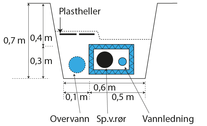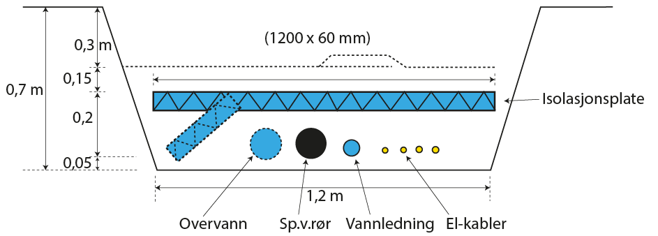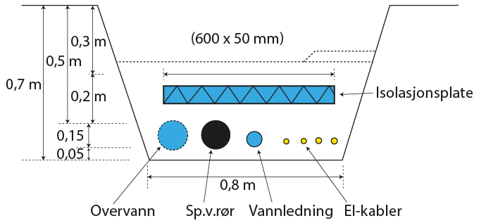 Det kan spares store beløp ved å legge vann- og avløpsrør grunnere enn frostdybden på stedet tilsier. I tillegg til at det kan spares i form av mindre graving og sprenging, er det mulig å samordne alle de utvendige tekniske anleggene på en mer rasjonell måte.