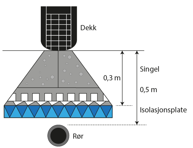 Når rørene legges grunt, må det tas hensyn til både frost og mekanisk påkjenning som rørene kan utsettes for. For å fordele trykket fra f.eks. bilhjul og anleggsmaskiner, må massen over platen ha evne til å fordele trykket. Singel med maks størrelse på 20 mm er best egnet som overfyllingsmasse. I tillegg må selve isolasjonsplaten være trykkfast. Vanlig polystyren (isopor) har gode isolasjonsegenskaper, men har ikke stor nok trykkfasthet.