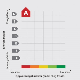 Oppvarmingskarakteren angir andel fornybar energi til oppvarming.