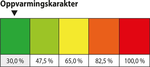 Oppvarmingskarakteren gitt i tabellen over er typiske verdier, og kan variere noe fra bygning til bygning.