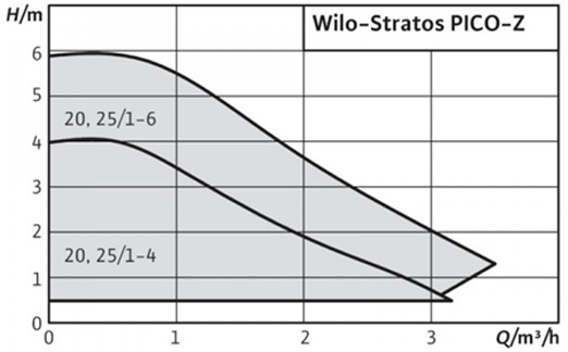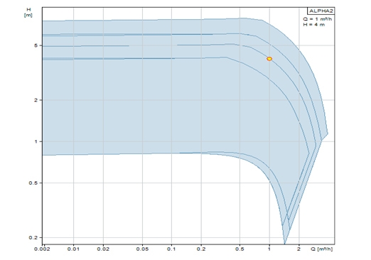 Produsentene presenterer diagrammer for flere pumper på samme ark. Du må velge pumpe som ligger i riktig område.