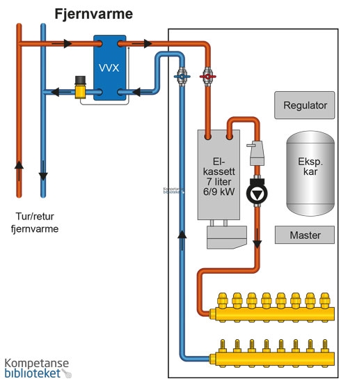 Eksempel på kompakt skap med gulvvarmefordeler.