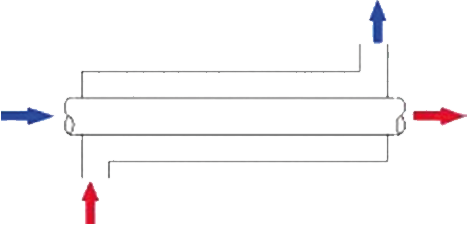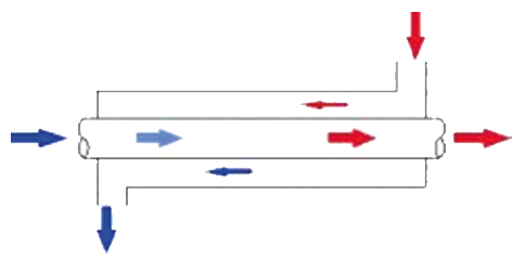 - Medstrømsveksler – væskene ledes i samme retning gjennom veksleren.