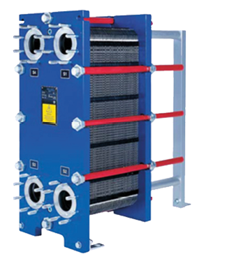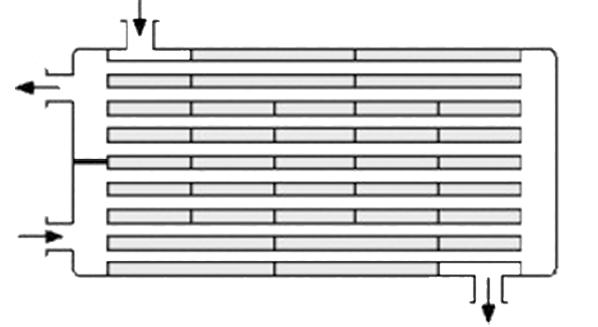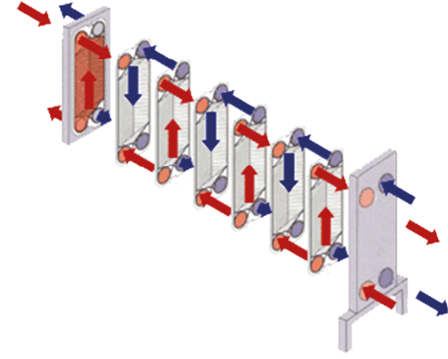 Figur 3. Platevarmeveksler som kombinerer alle tre strømningsprinsippene (Alfa Laval).
