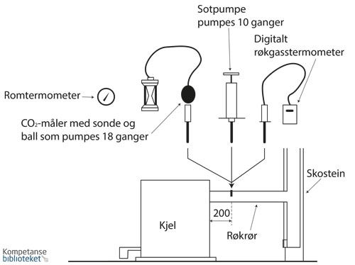 - Ha alt utstyr klart, ferdig kalibrert og kontroller at det er boret hull i røykrøret fra kjelen for målinger, ca. 20 cm fra kjelen.