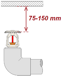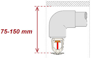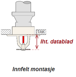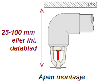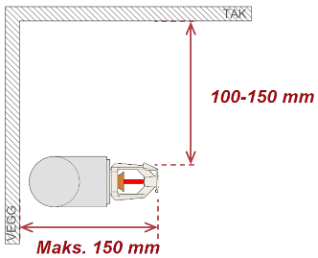 - Se figurer under for krav til deflektorplatens avstand til tak/himling for boligsprinklere.