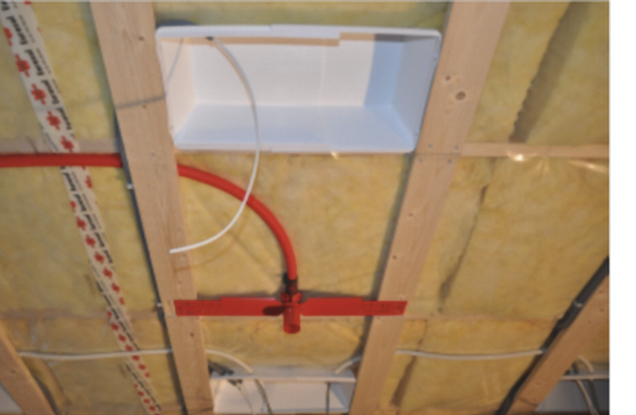 Rør til sprinkler anlegg kan støpes inn der dette er i samsvar med gjeldende norske standarder og produktdokumentasjon med monteringsanvisning.