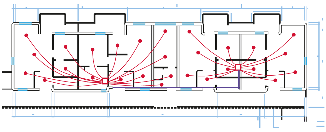 Figur 1. Skissen viser rør-i-rør-anlegg til to leiligheter.
