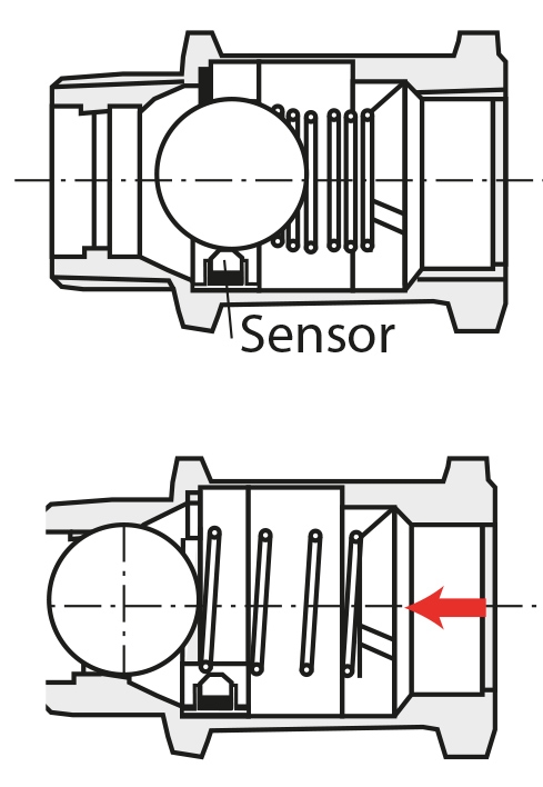 Den termiske sikkerhetsventilen har en innmontert sensor som stenger for gasstilførselen når temperaturen overstiger 92–100 °C. En låsemekanisme vil da frigjøres og kulen i ventilen vil stenge for gjennomstrømming av gass.