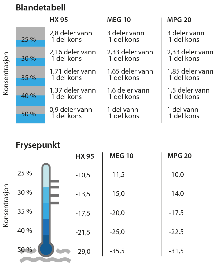 - Ikke bland ulike frostmedier, heller ikke fra ulike leverandører.