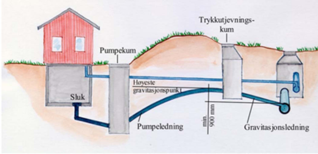 Figur 2. Kravet til overhøyde på minst 900 mm gjelder også for pumpeledning: https://www.oslo.kommune.no/vann-og-avlop/