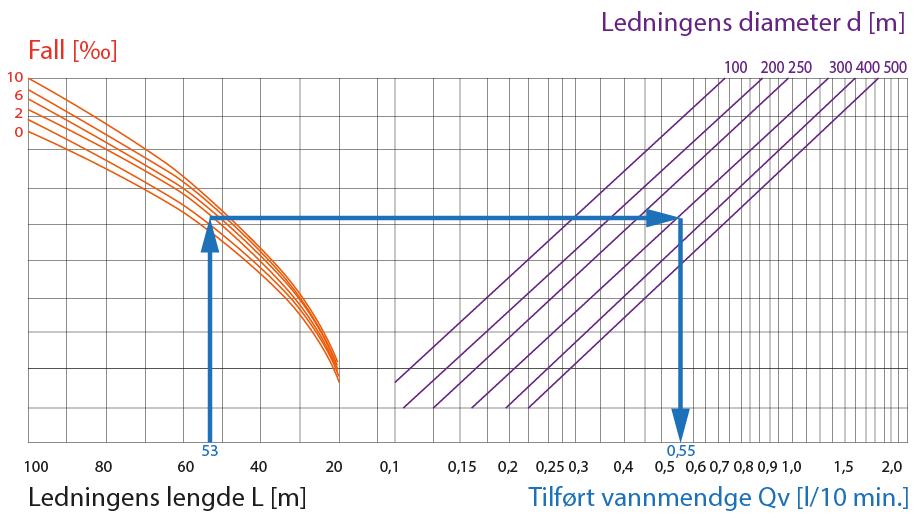 Skjøtene skal holde for et innvendig vanntrykk på 1 m VS overtrykk og tiden det skal ta før trykket har forsvunnet. Tilført vannmengde er avhengig av fallet, lengden, og diameteren. For tetthetsklasse 1 gjelder følgende diagram: