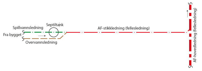 - Fellesledninger: for overvann og spillvann i samme ledning (AF-ledning)