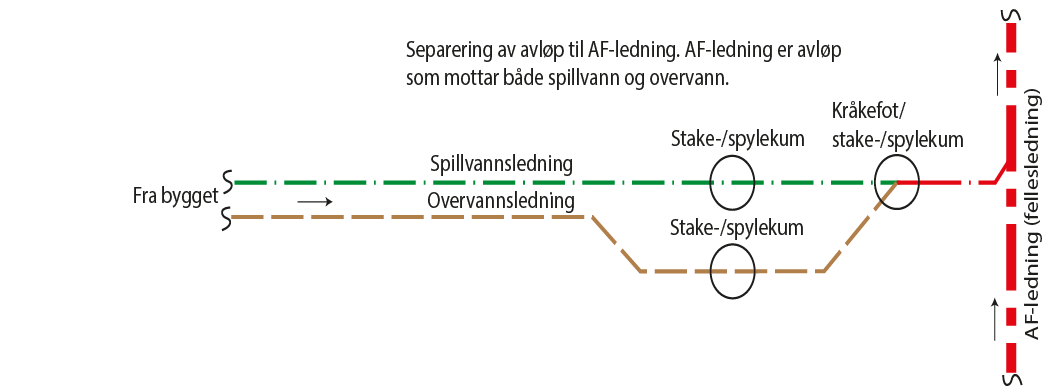 Figur 2. Separering av avløpsledninger før tilkopling til AF-hovedledning.
