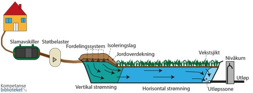 Tradisjonelle filteranlegg med sand klarer ikke å fjerne fosfor fra avløpsvannet og godkjennes derfor ikke etter Forurensningsforskriften. Et relativt nytt alternativ til sandfilteranleggene er våtmarksanleggene. Dette er anlegg med vannmettede, tilplantede filtre der vannet strømmer gjennom et filter i et utgravd basseng med dybde på ca. 1 meter. Anlegget består av: