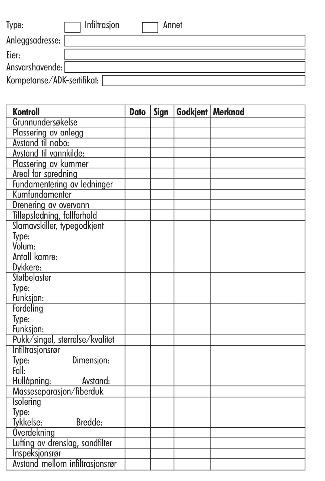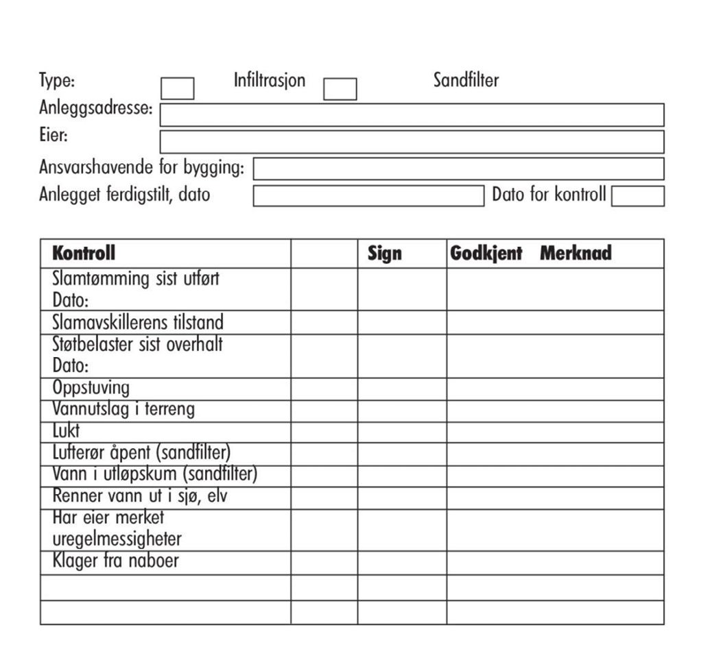 Sjekkliste for bygging og drift av separat avløpsanlegg