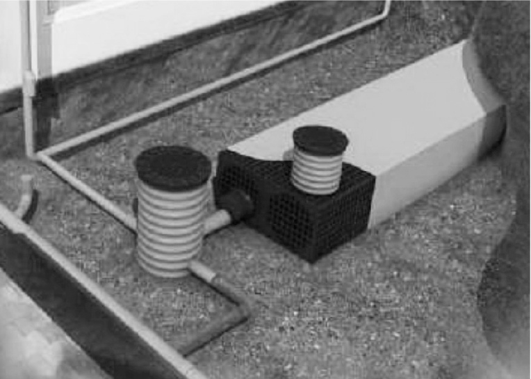 - Skal utløpet fra magasinet tilkoples nettet, monteres utløpskum med dykker med minst 60 cm sandfang