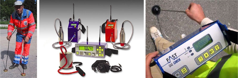Når andre metoder ikke har gitt ønsket resultat, kan det foretas en sporgasspåvisning. Gassen, gjerne 95 % nitrogen og 5 % hydrogen, føres inn i ledningen og vil raskt søke seg til overflaten når den kommer ut av lekkasjen. Hydrogen er 16 ganger lettere enn luft, og molekylene er så små at de kan trenge gjennom harde flater i asfalt og betong. Når gassen har nådd frem til lekkasjen, er det kun et spørsmål om tid før den trenger opp