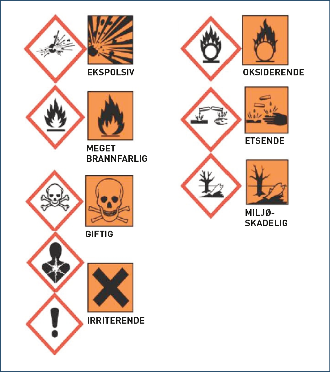 Tabellene er basert på internasjonale kriterier som er utgitt av FN. Forkortelsen GHS betyr Globalt harmonisert system for klassifisering og merking av kjemikalier.