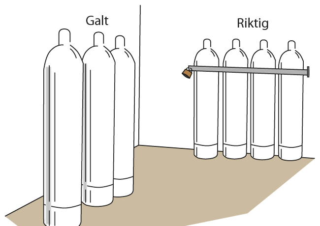 Figur 1. Gassflasker må lagres på en forsvarlig måte!