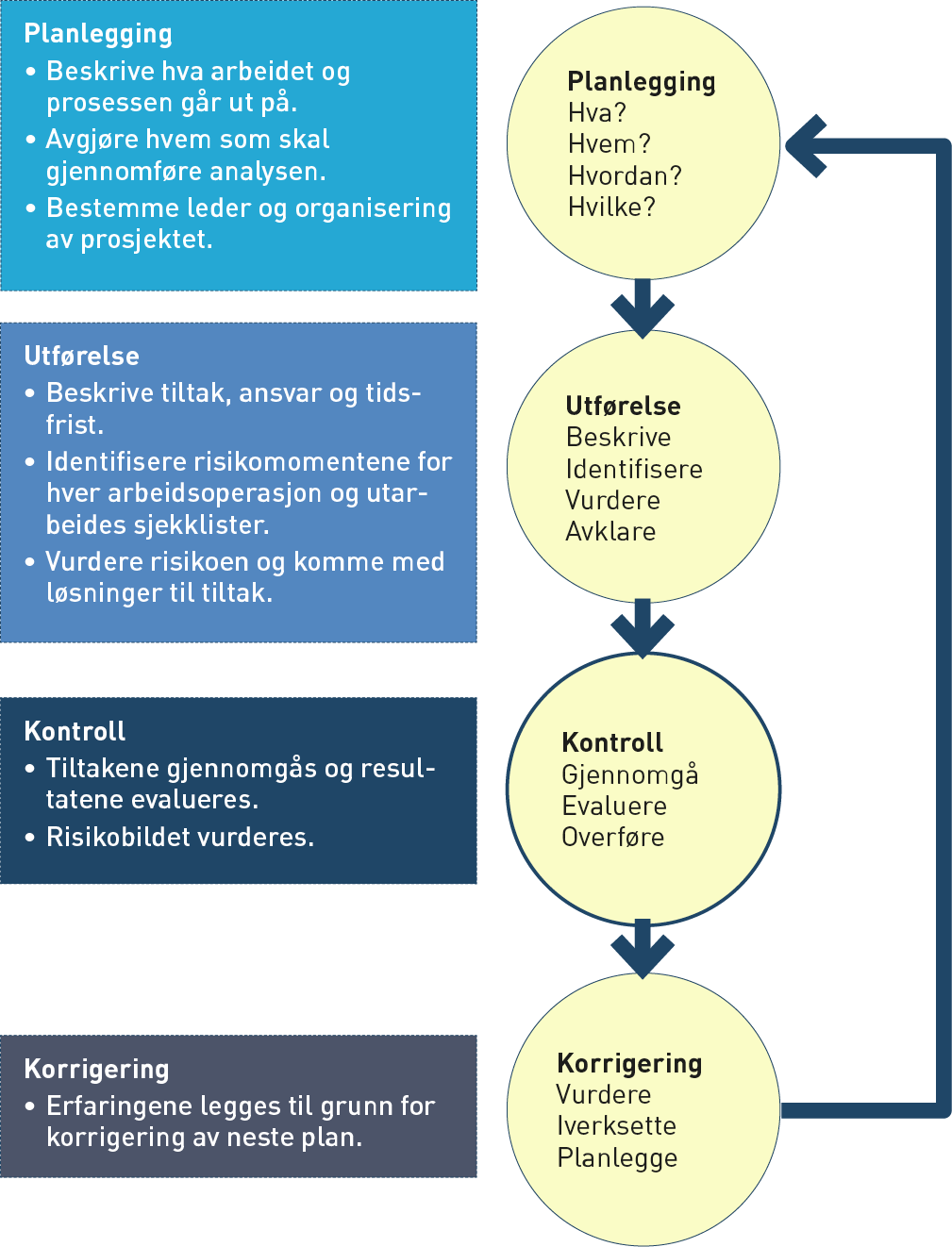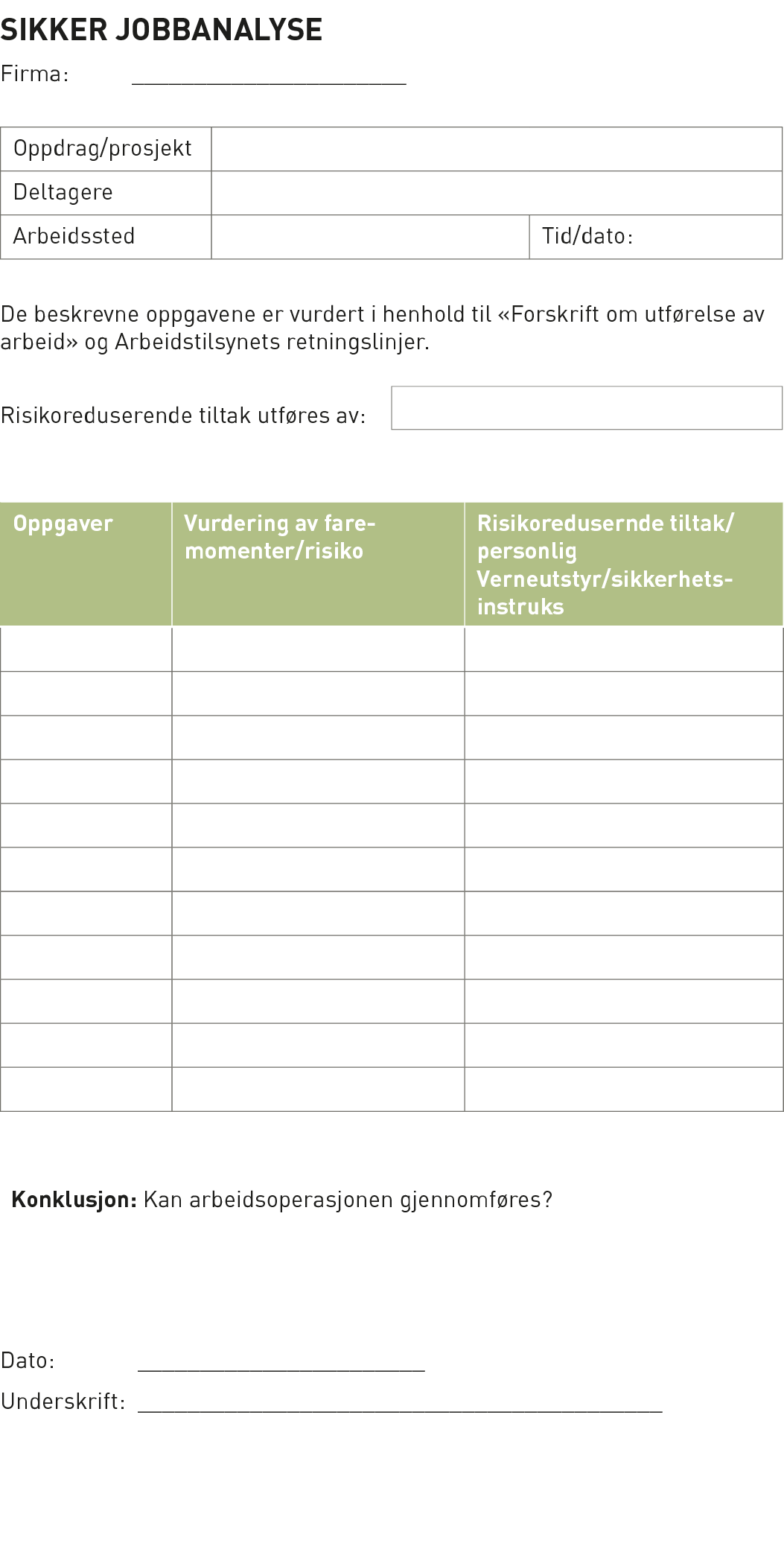 De beskrevne oppgavene er vurdert i henhold til Forskrift om utførelse av arbeid og Arbeidstilsynets retningslinjer.