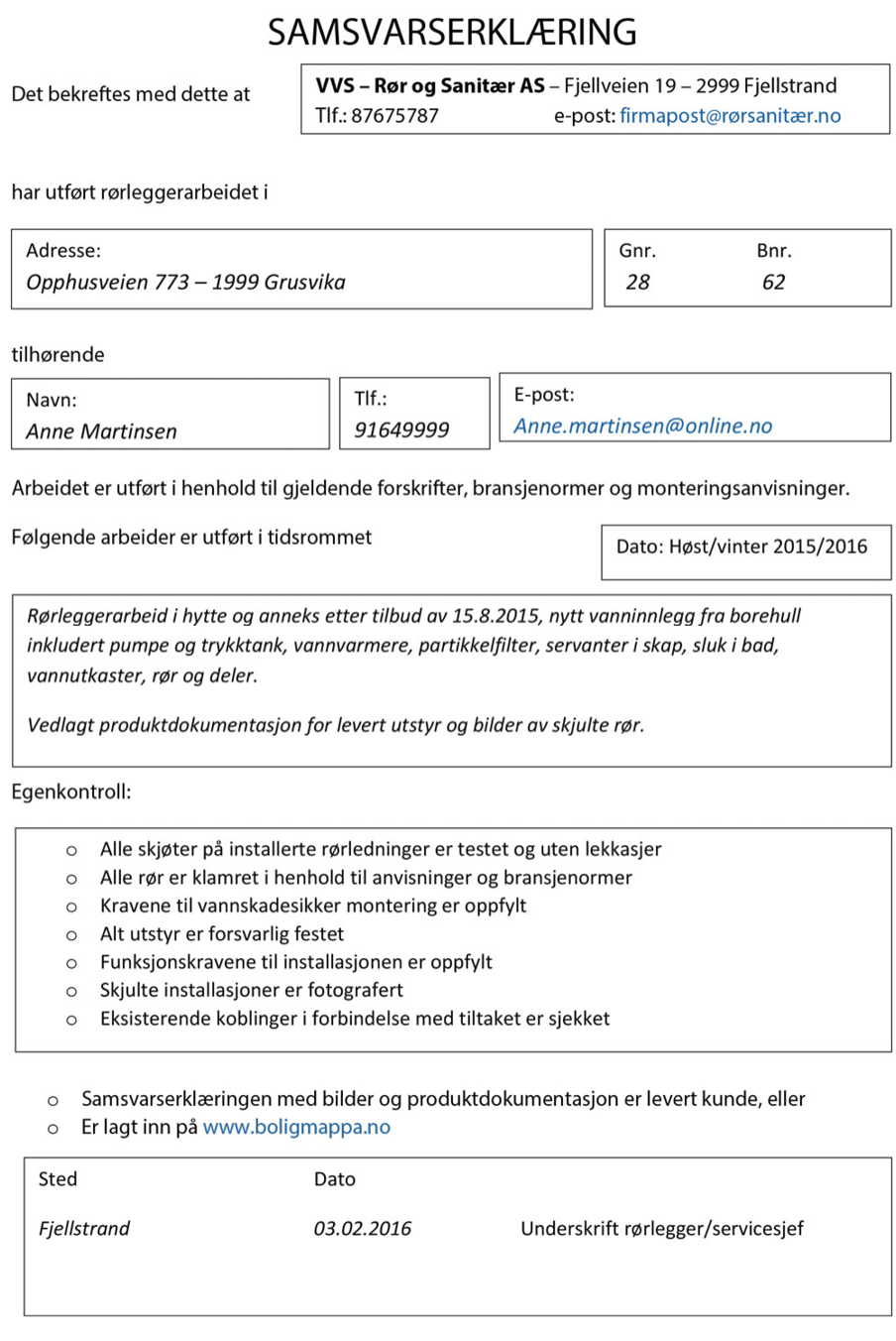 Kunden har lovpålagt krav på å få en dokumentasjon av det utførte arbeidet.