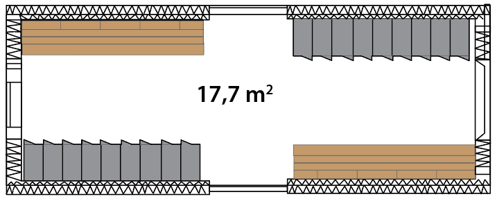 | Skifterom for inntil 18 personer: i denne brakken bør maks. 5 personer oppholde seg samtidig. |