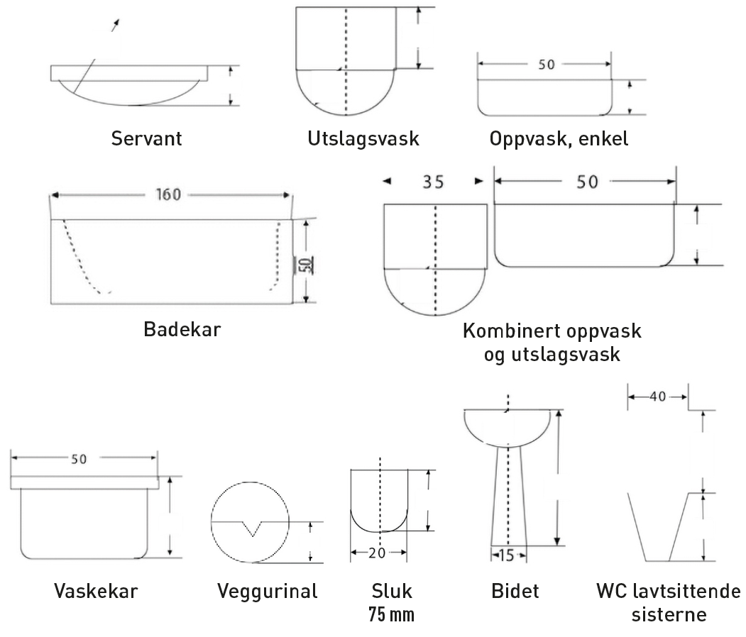 930.51 Utstyrssymboler for sanitæranlegg