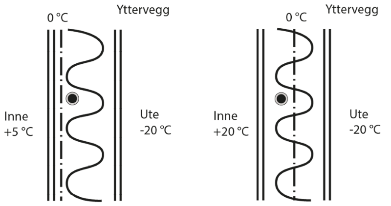 Derfor er hovedregelen at vannrør i yttervegg skal unngås.