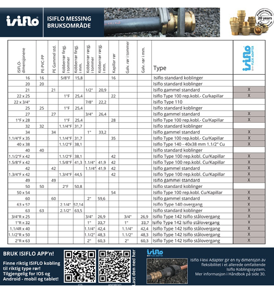 ISIFLO | PE-PVC-PP* | PE gammel std. | Kobberrør fingj. | Kobberrør fingj. | Kobberrør rørgj. | Kobberrør rørgj. | Kapillar rør | Galv. rør | Galv rør |