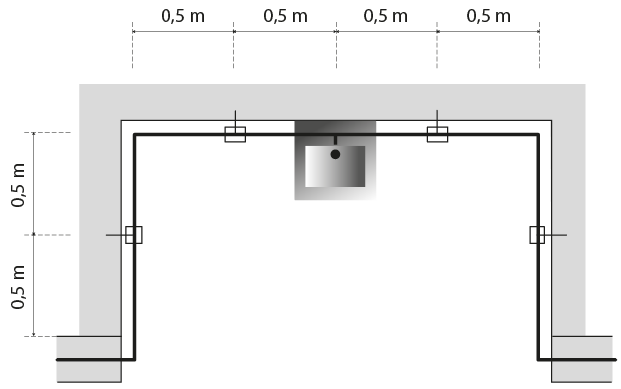 - Klammer monteres med lik avstand fra tak/vegg og rett ovenfor hverandre.